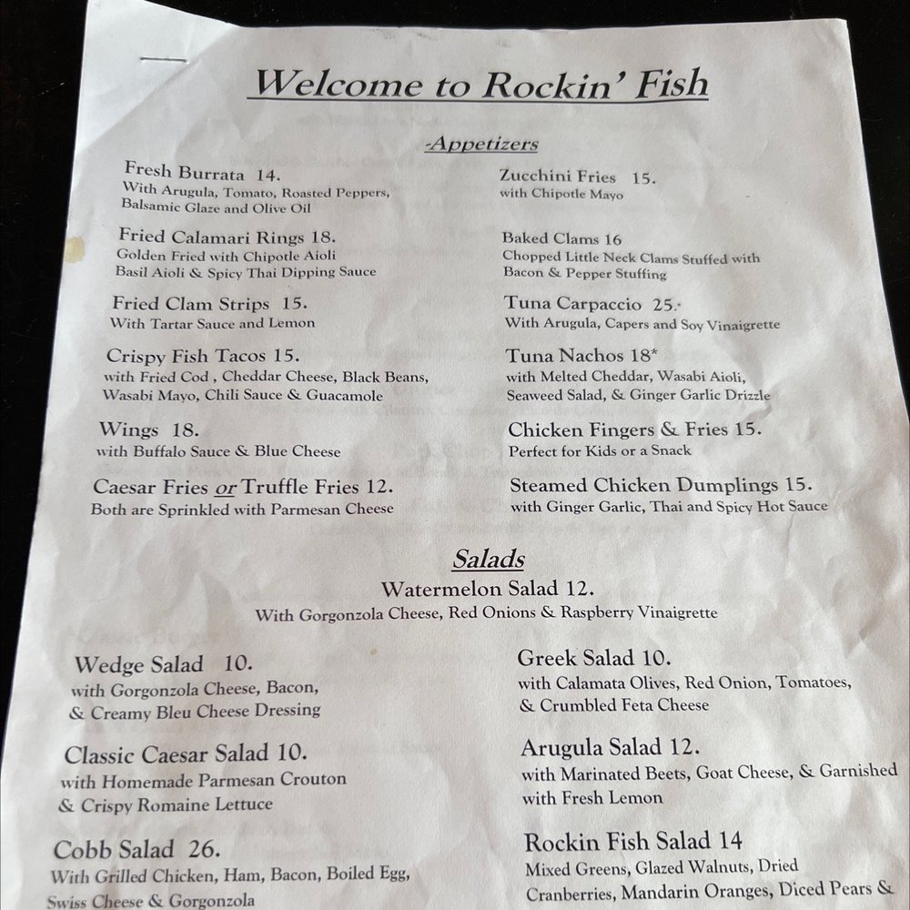 Rockin Fish Menu
